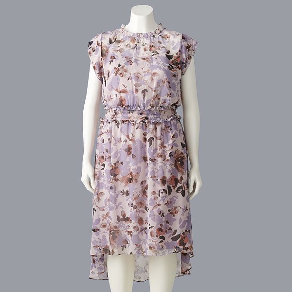 Plus Size Simply Vera Vera Wang Floral Smocked High Low Dress